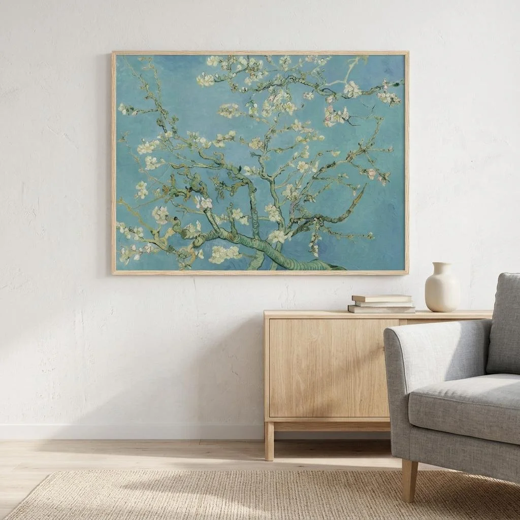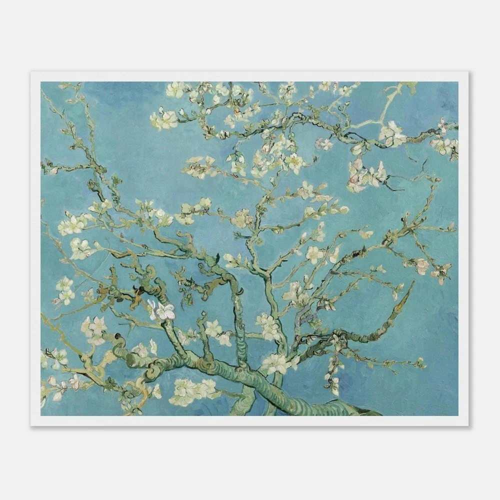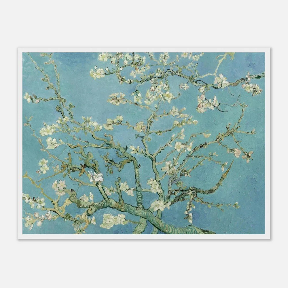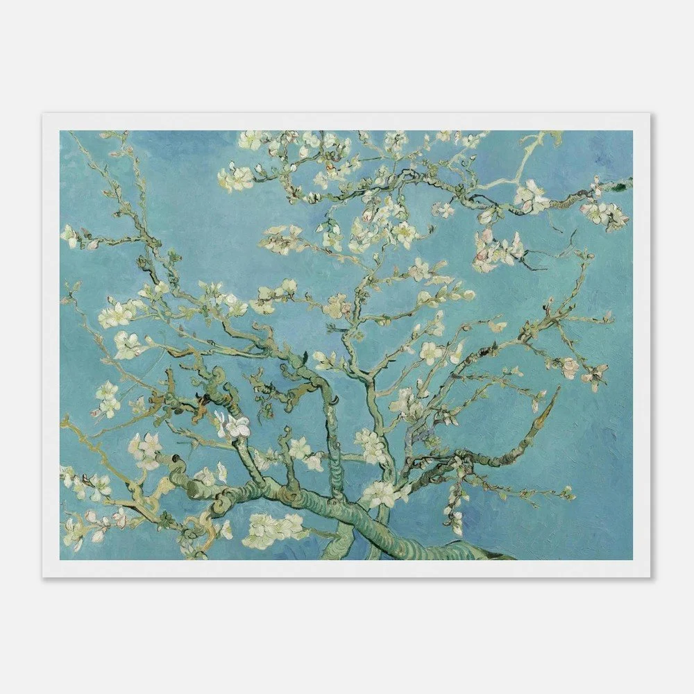 About the Artwork: Almond Blossom - Painted in February 1890 in Saint-Rémy-de-Provence, France, Almond Blossom is one of Vincent van Gogh's most cherished and joyful works. He created this masterpiece as a gift for his brother Theo and sister-in-law Jo to celebrate the birth of their newborn son, who was also named Vincent. ---- About the Artist: Vincent van Gogh - Vincent van Gogh (1853–1890) was a Dutch Post-Impressionist painter whose posthumous influence on Western art has been monumental. Despite a career that spanned only about a decade, he was incredibly prolific, producing over 2,100 artworks, including iconic landscapes, still lifes, portraits, and self-portraits. Plagued by severe mental health struggles and financial hardship throughout his life, van Gogh found solace and a powerful means of communication through his art. His pioneering use of bold, dramatic colors and highly expressive, emotive brushwork broke away from traditional representations, laying the essential groundwork for modern expressionism and forever changing how raw emotion could be conveyed on canvas. . Material : Premium Matte Paper